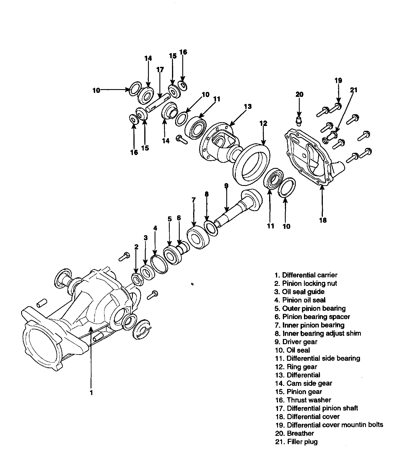 9. Check the side gears, pinion gears and pinion shaft for wear or damage.