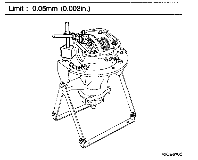 b. If the runout is beyond the limit, check that there are no foreign substances between the drive gear and differential case and, that the bolts fixing the drive gear are not loose.