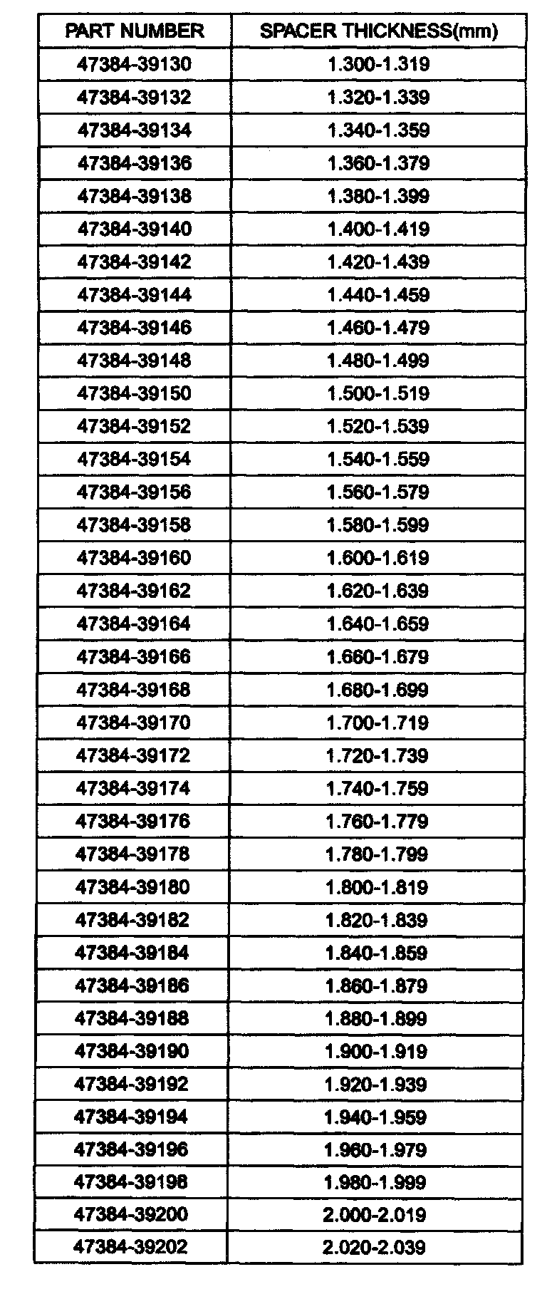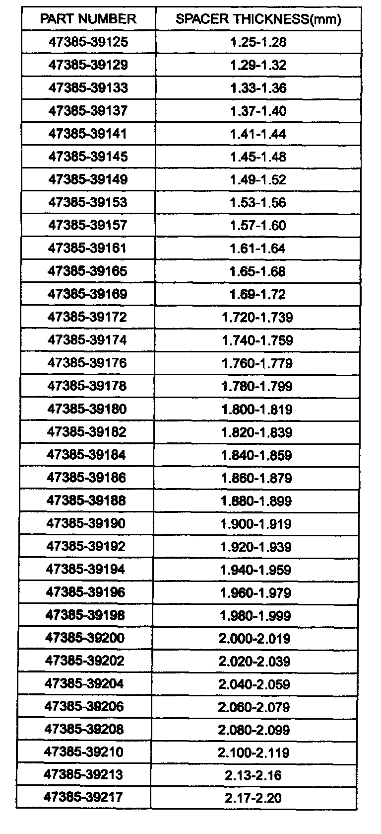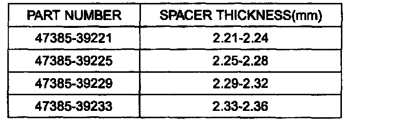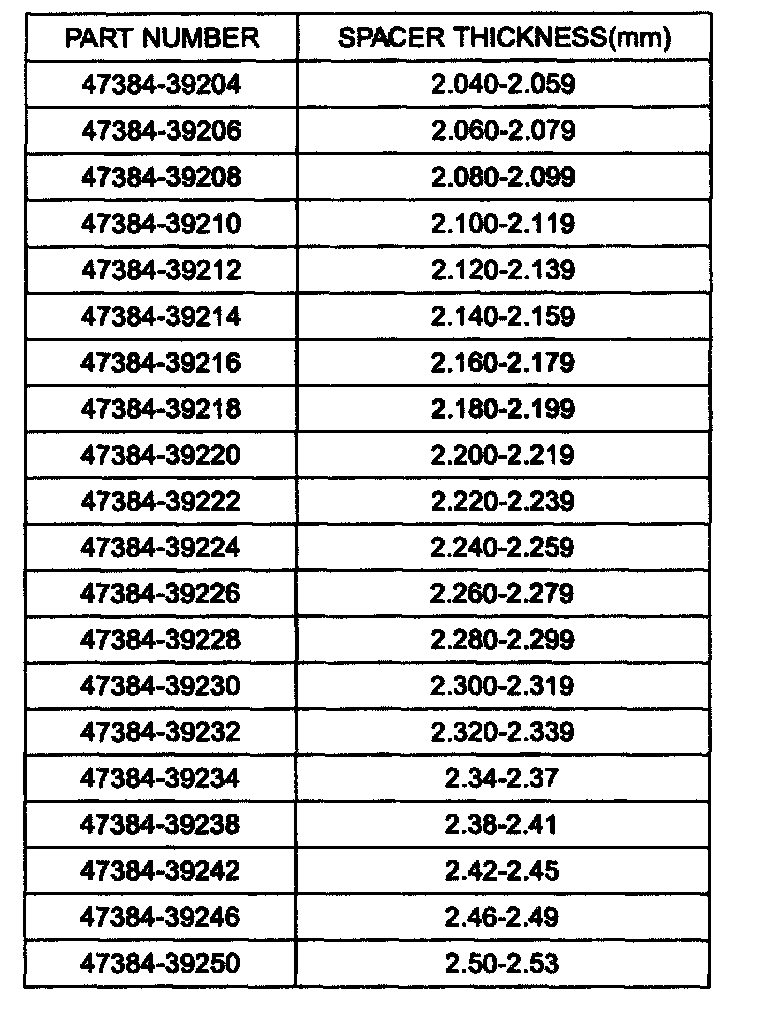 11. Select the spacer thickness from the chart above in the step 7. Thickness S3 = M-L + (0.09 to 0.12 mm) preload.