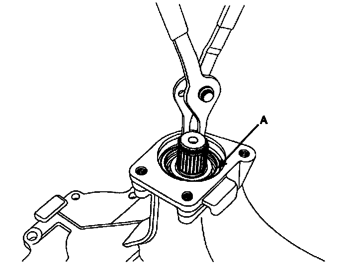 15. Fixing the inner drive shaft assembly with a snap ring (A), insert a new oil seal into the transfer cover.