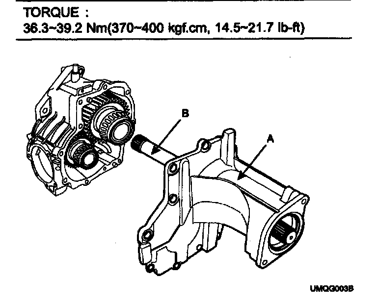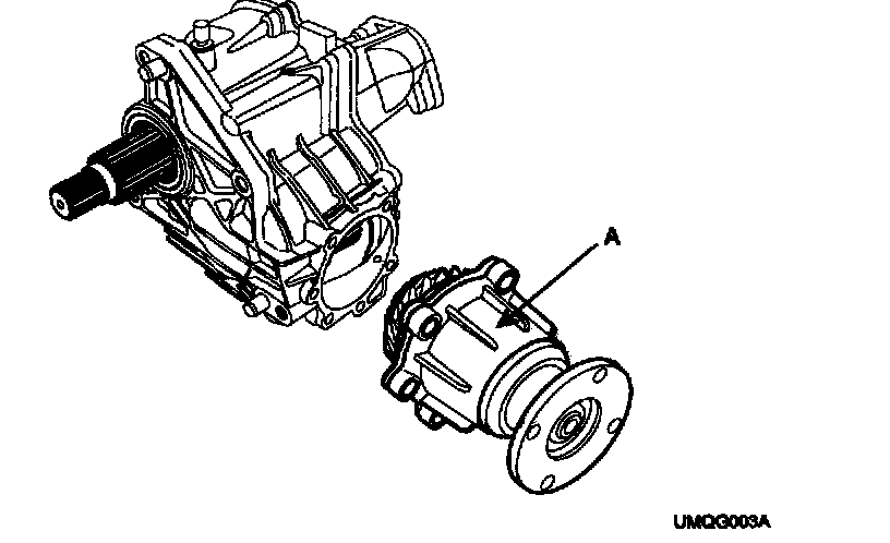 19. Assemble the transfer cover (A) and inner drive shaft assembly (B) with the transfer housing assembly. Tighten the mounting bolts.