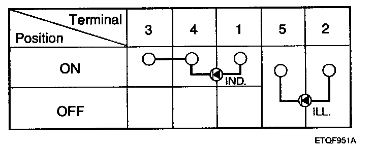 3. Check for continuity between terminals while operating the defogger switch.