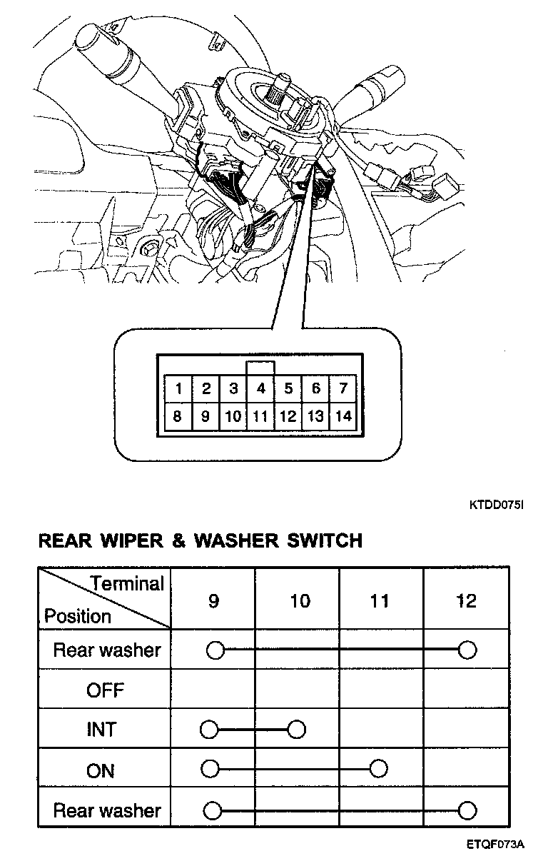 With the rear wiper & washer switch in each position, make sure that continuity exists between the terminals above.