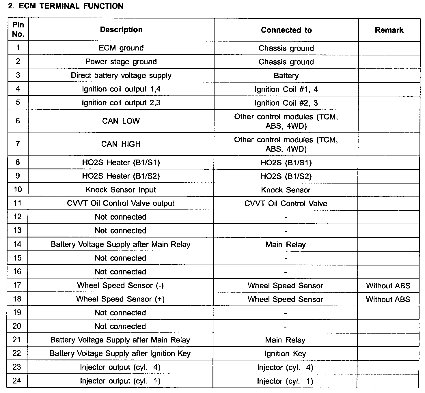 Engine Control Module (ECM) - ECM Terminal Function (Part 2):