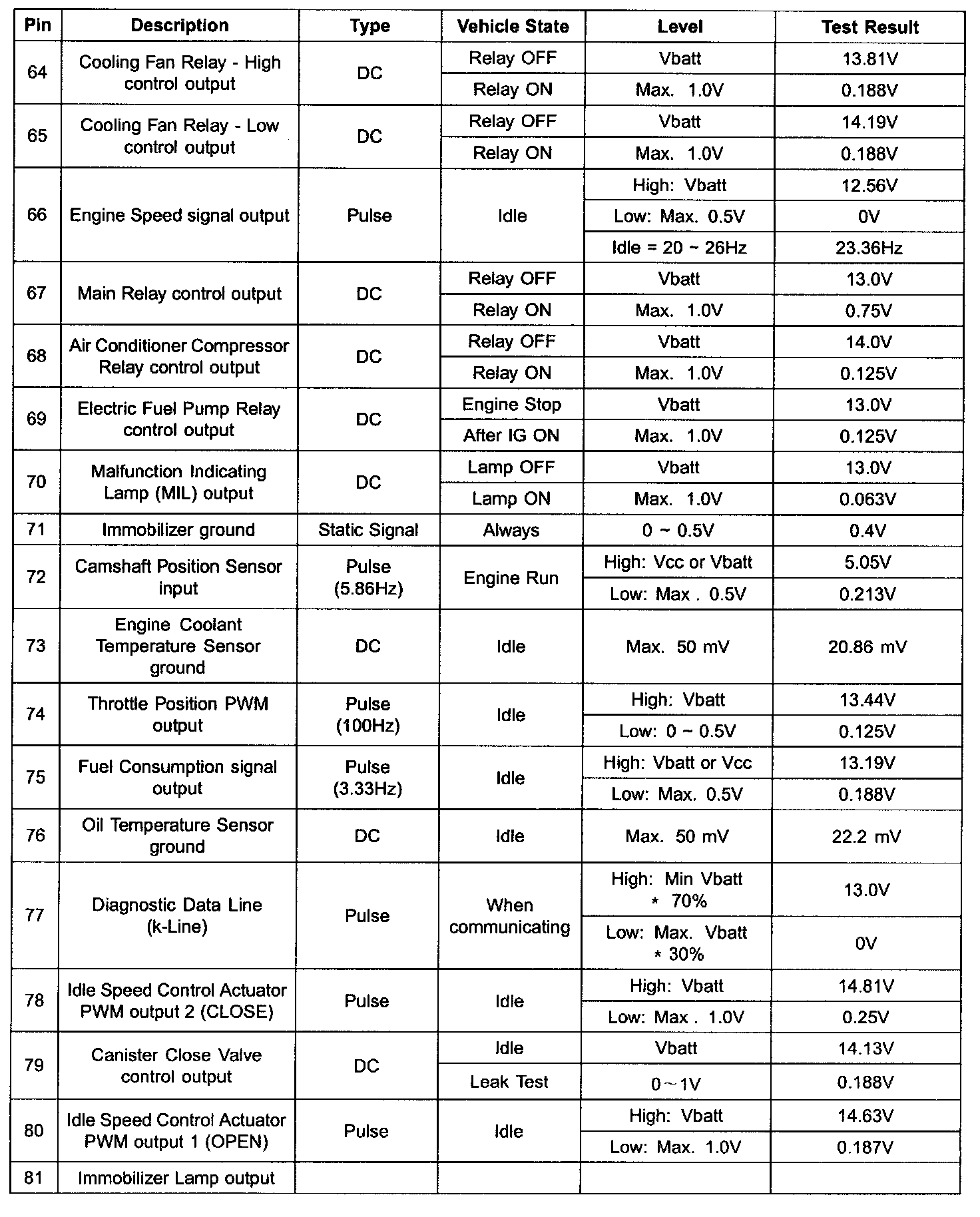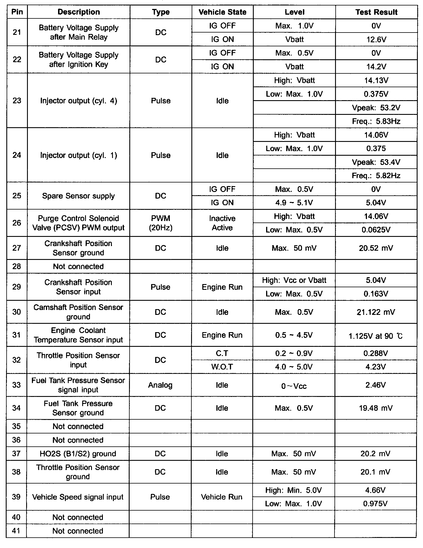ECM Terminal Input/Output Signal (Part 4):