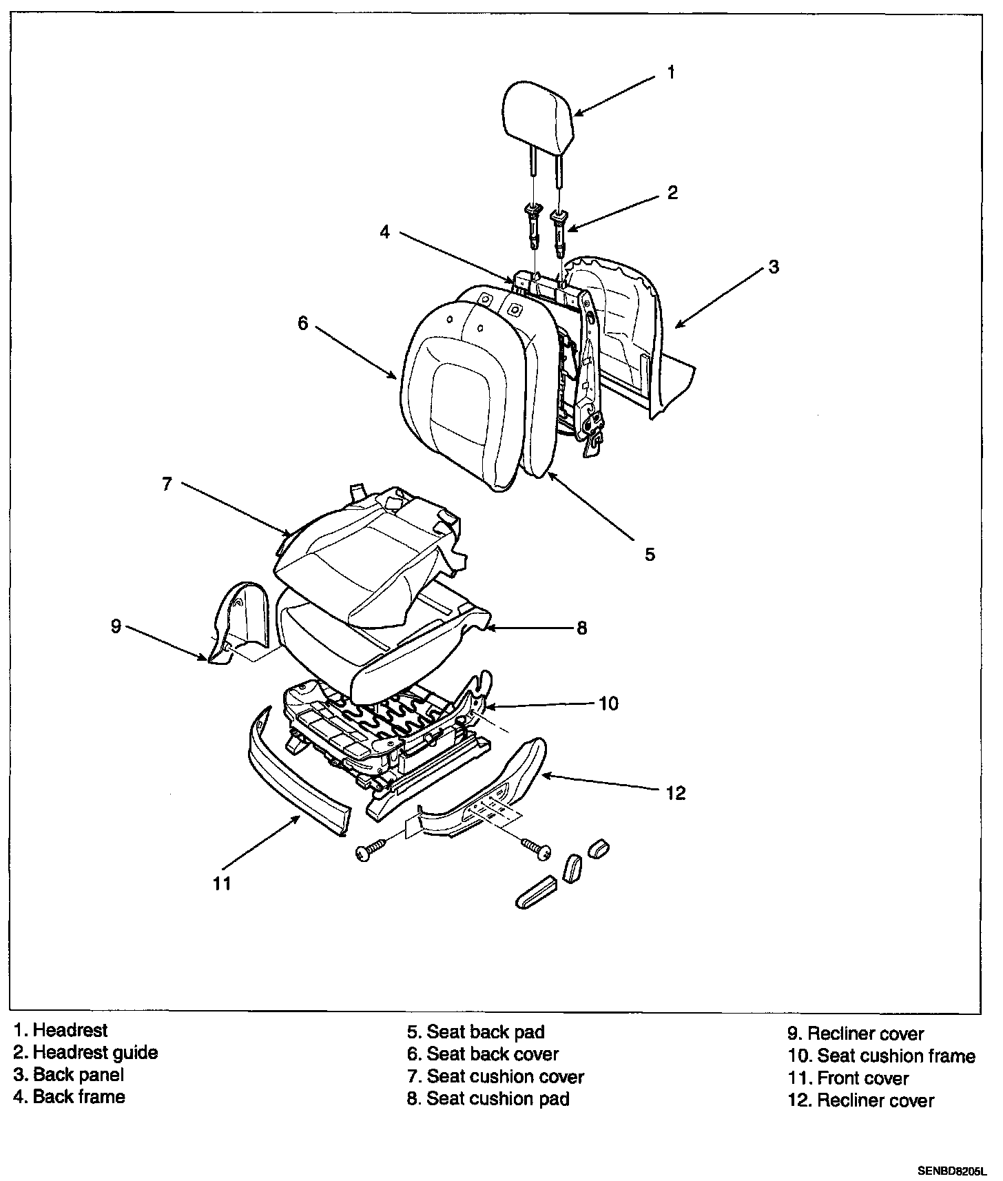 - Set the seat into the most rearward position. Check the front mounting bolt completely.