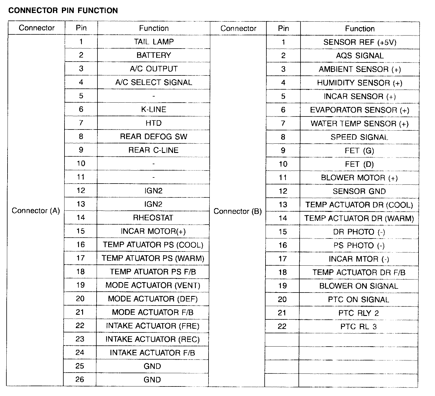 Connector Pin Function:
