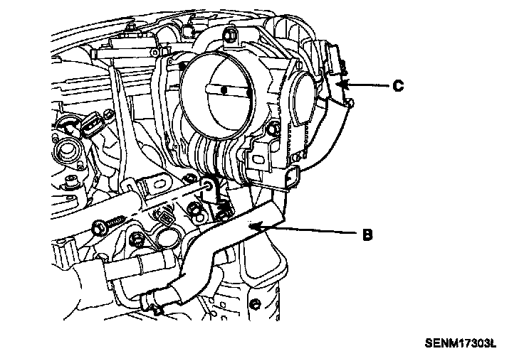 2. Remove the air cleaner body (D) and the intake hose (C).