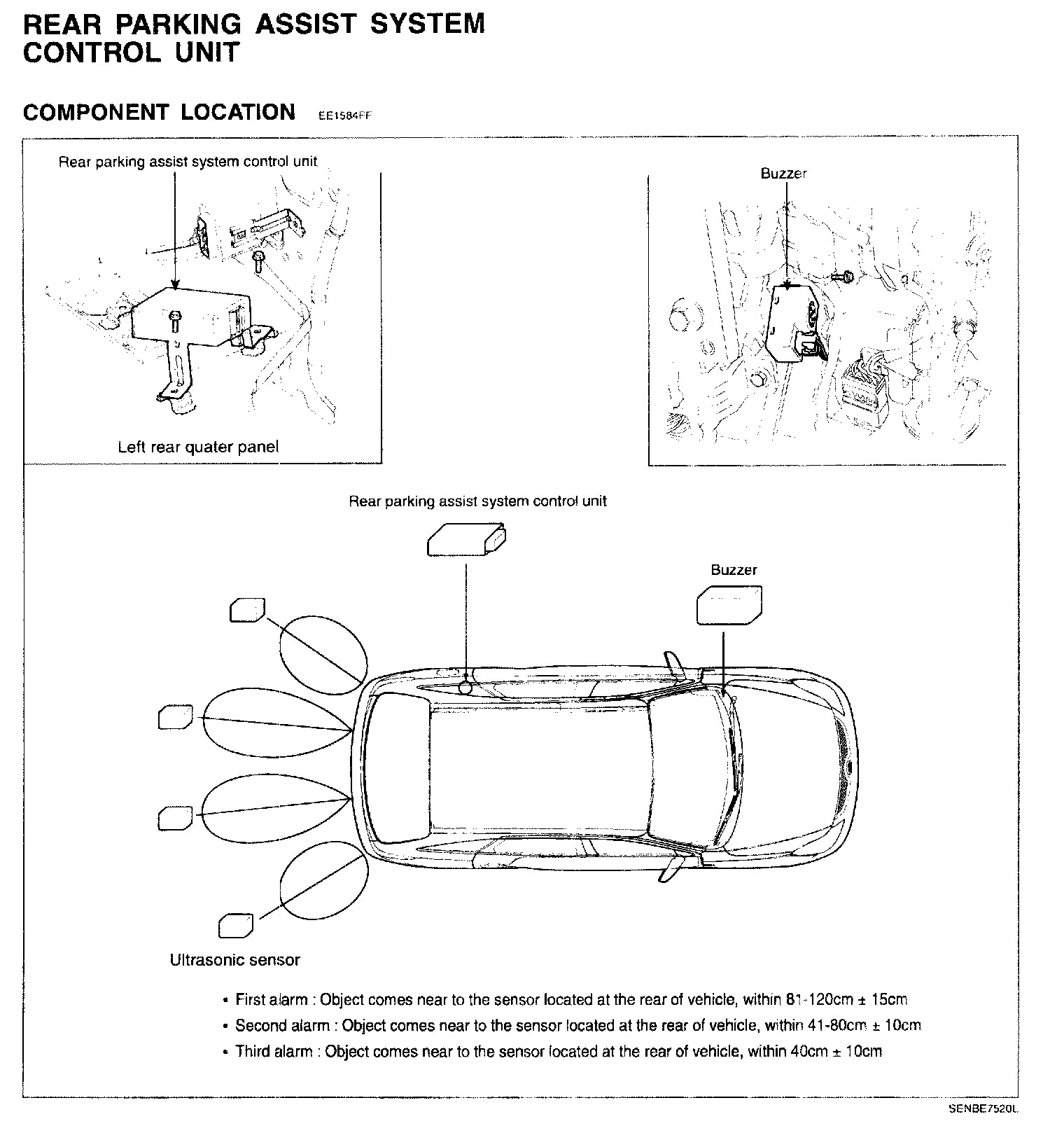 Rear Parking Assist System Control Unit Component Location: