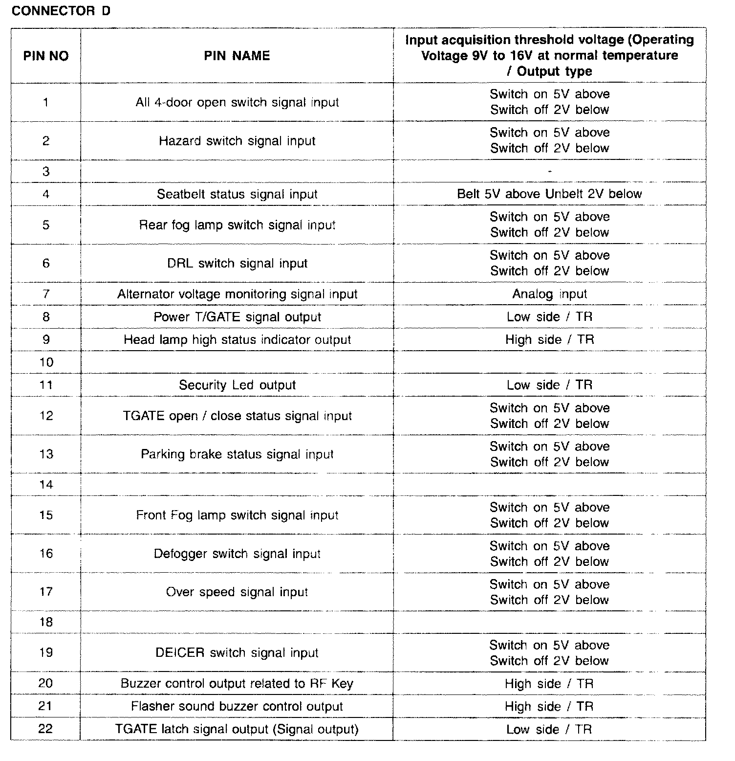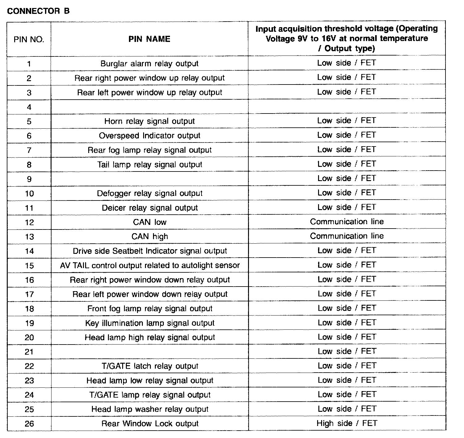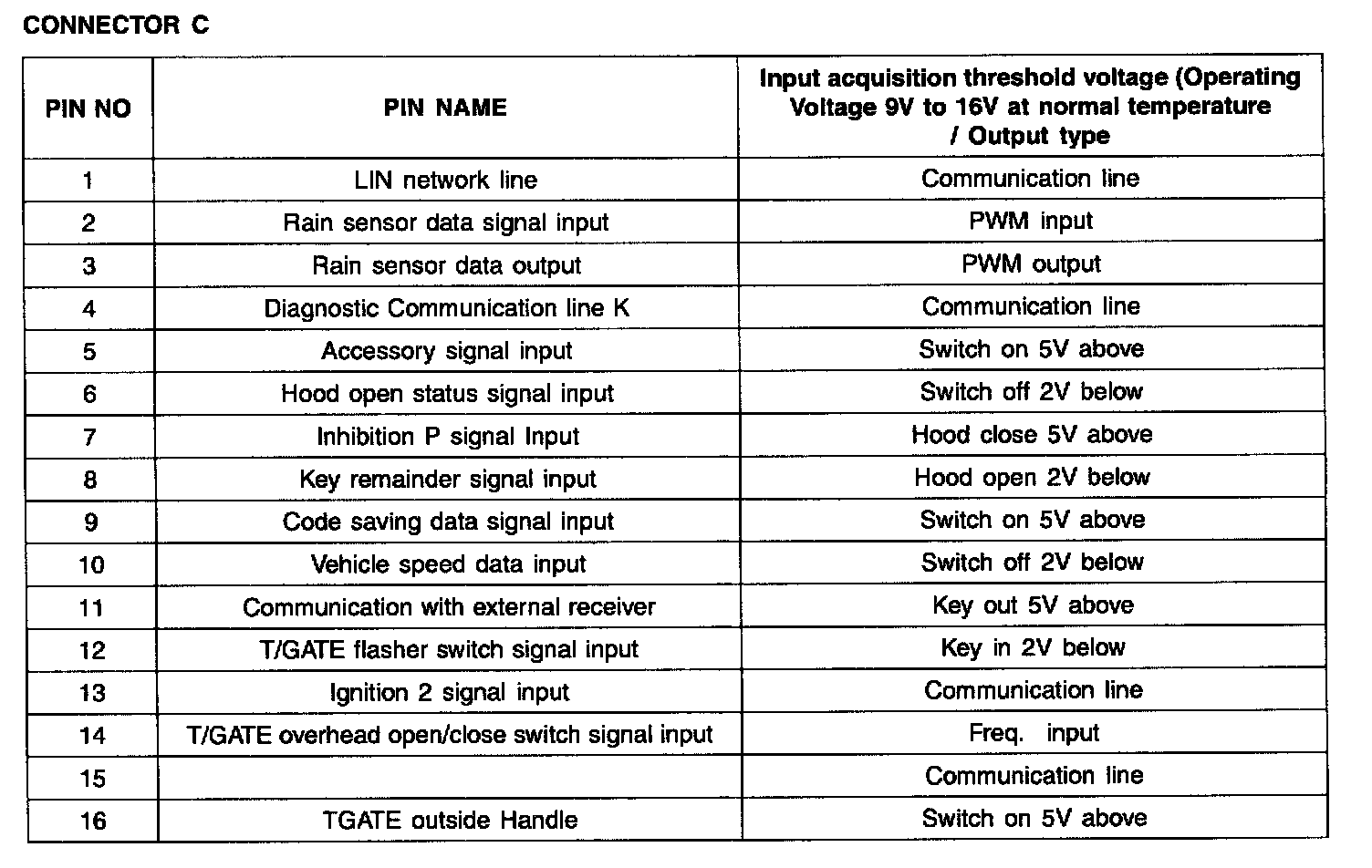 Pinout Values and Diagnostic Parameters