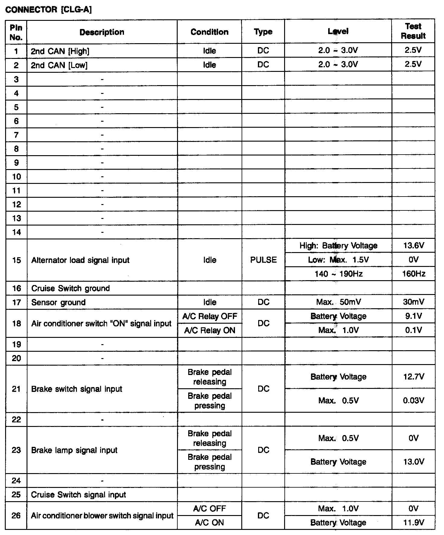 ECM Terminal Input/Output Signal - Connector (CLG-A) Part 4: