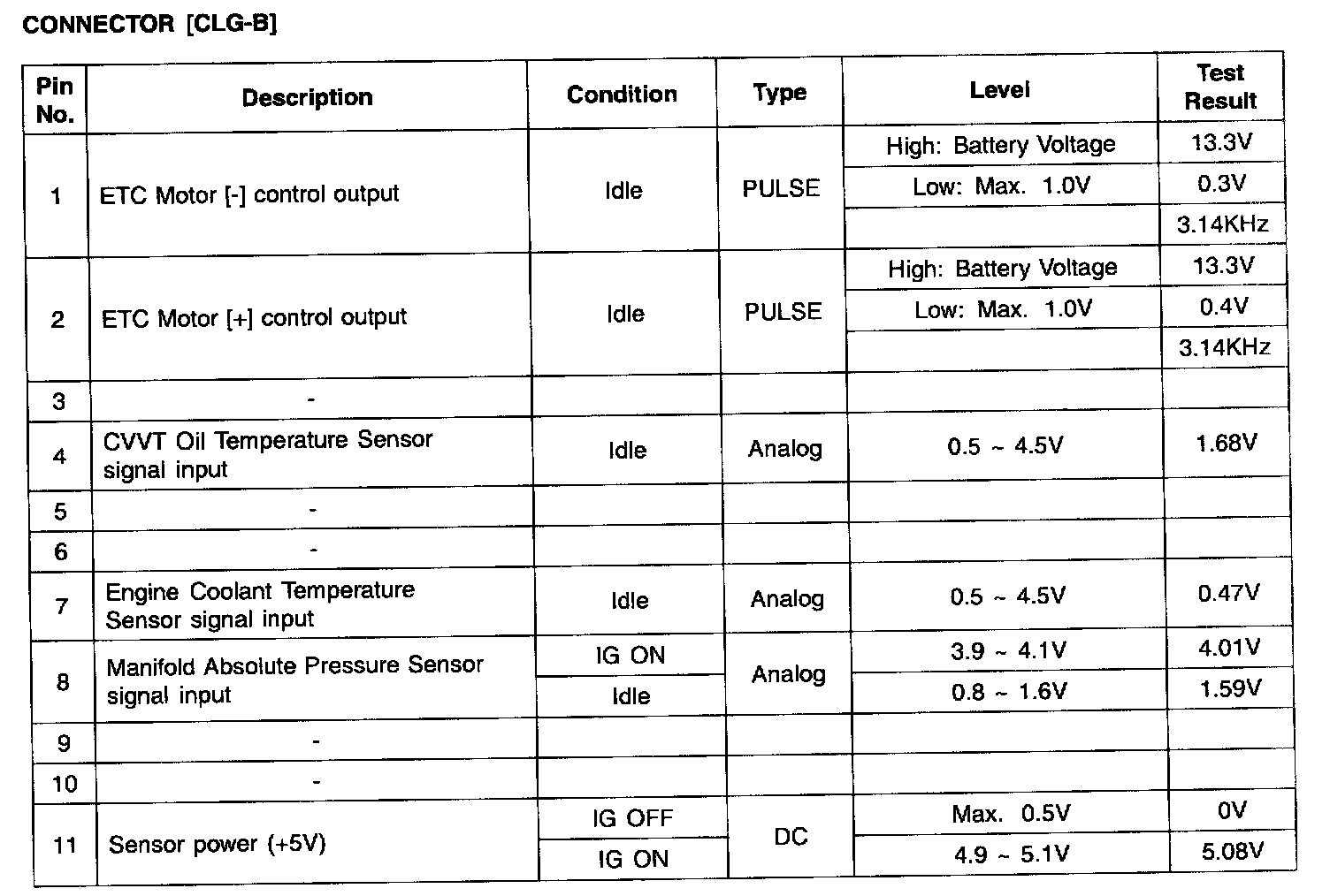 ECM Terminal Input/Output Signal - Connector (CLG-B) Part 5: