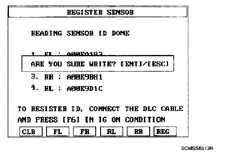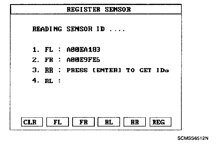 SENSOR INITIATING PROCEDURE1. Read the four sensor's IDs starting with sensor 1 (1 normally front left, 2 front right, 3 rear left, 4 rear right).