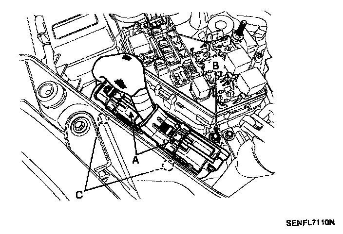 4. Unscrew the PCM bracket mounting bolt (8) and the nuts (C), and then remove the PCM.