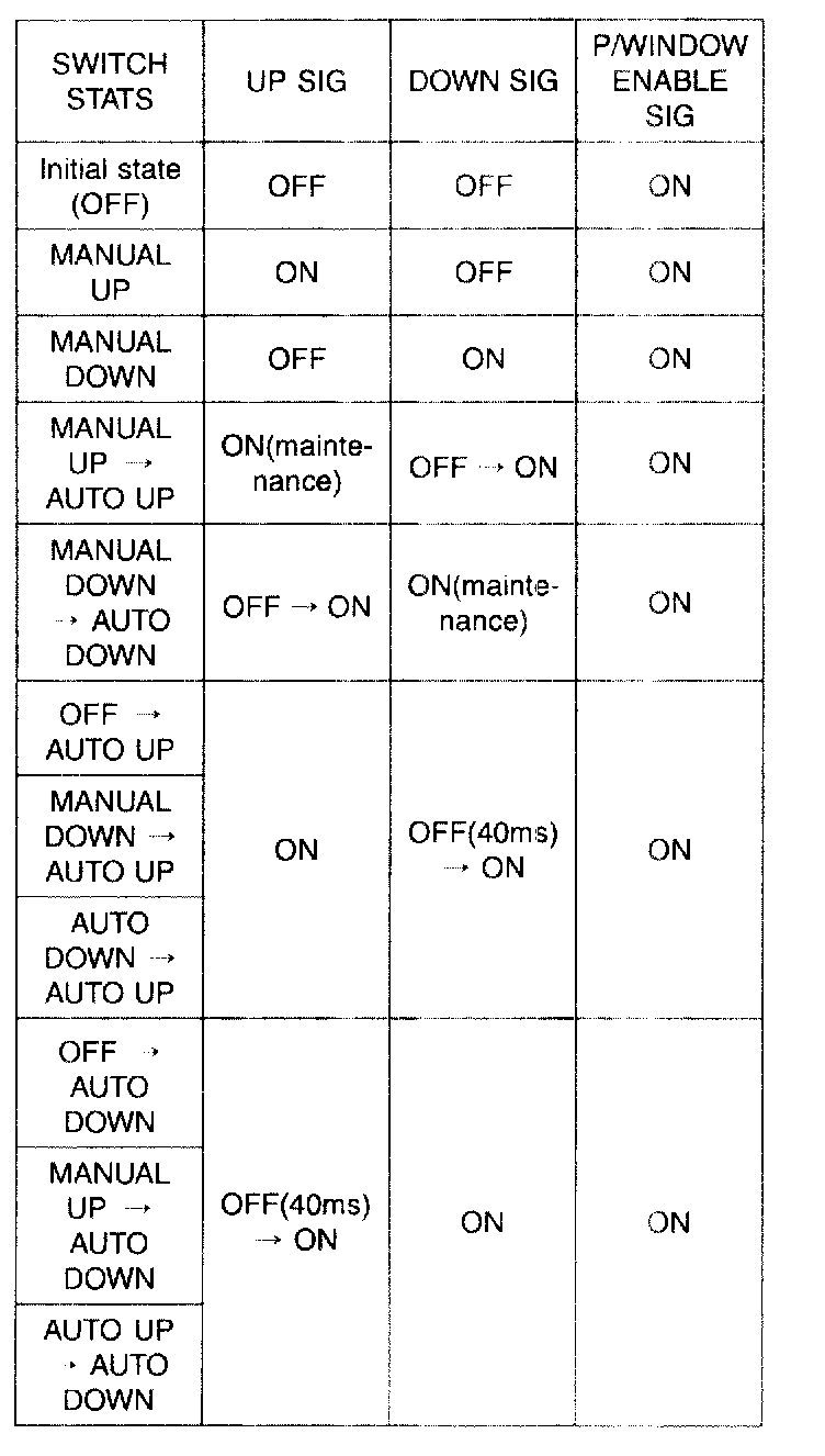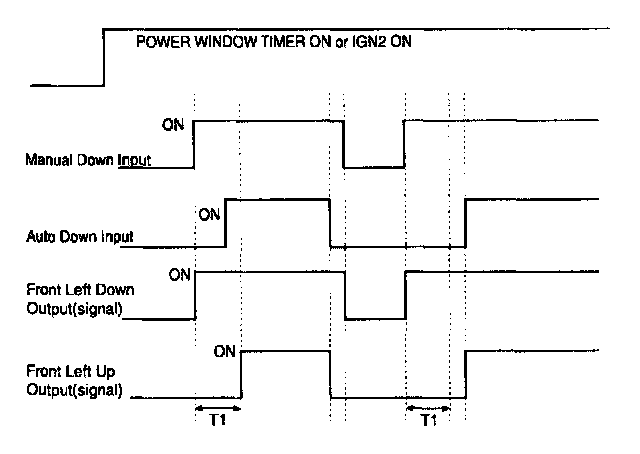 * At POWER WINDOW TIMER ( FROM BCM ) OFF & IGN2 (DDM) OFF, independently of SWITCHs' state UP SIGNAL and DOWN SIGNAL are OFF state preservation.