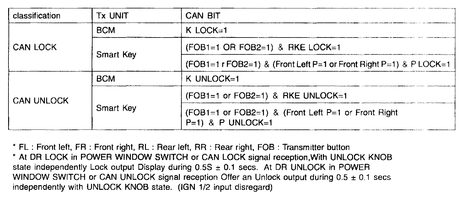 4. CAN LOCK/UNLOCK signal is same as in above table.
