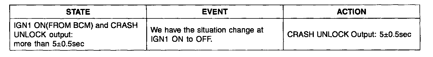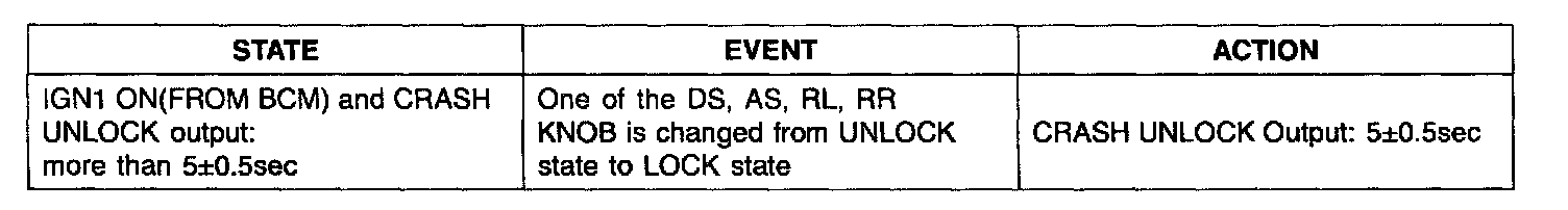 6. Do not re-output after outputing crash-unlock for 5 seconds state at Knob Lock input in Unlock output. That is, in IGN1 On state When change by Lock in Knob Unlock state after Crash Unlock generating power, execute re-output.