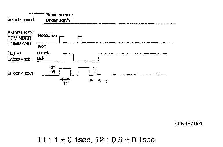 1. at the case of receiving SMART KEY REMINDER, operate UNLOCK output for 1 second. After UNLOCK output, when the state of FL DOOR LOCK SW or FR DOOR LOCK SW maintain the state of lock, operate unlock for interval of 0.5 second and make a pause of 3 times.