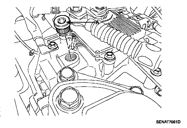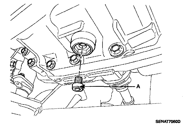 5. Remove the overflow plug (A) and the O-ring by using Torx wrench (T40) when ATF temperature on CAN signal rises up to 50-60°C at stabilized idle speed condition.