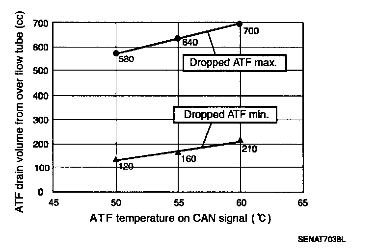 6. Oil level is correct if ATF drain volume is in the range in the figure beige.