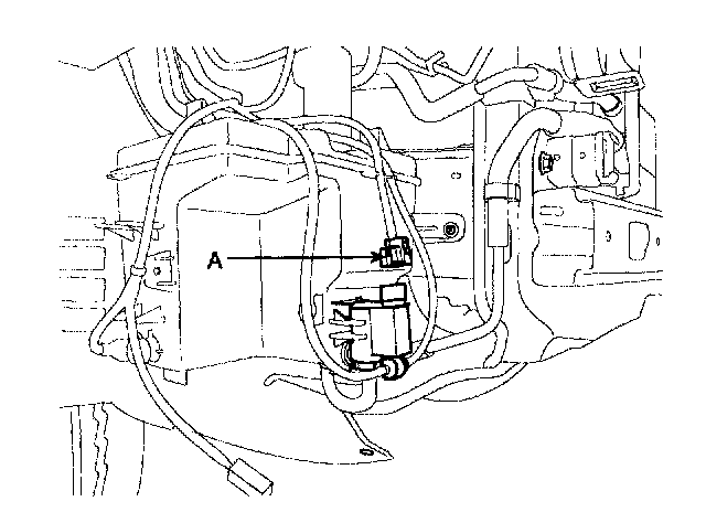 4. Disconnect the washer fluid level sensor switch connector (A).