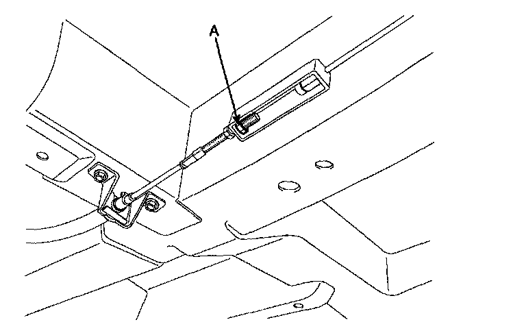 1. Adjust the adjusting nut (A) so that parking pedal stoke is to be 88 - 98 mm(3.46 - 3.86 in) when operating effort is 200 N(20 kgf, 44 lb) after full stroke operation of parking pedal over 3 times for setting parking wire.