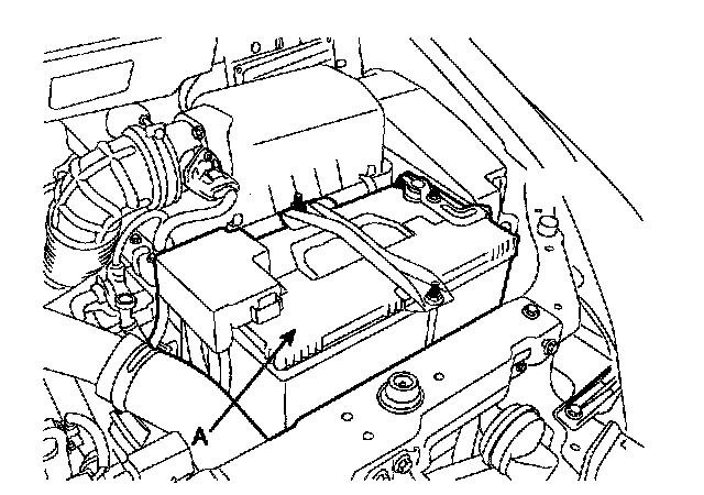 3. Disconnect the negative terminal from the battery and remove the battery(A).
