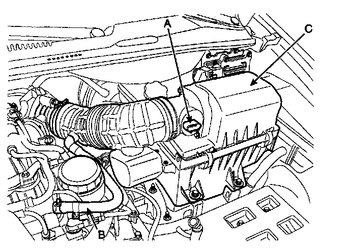 3) Remove the intake air hose and air cleaner assembly(C).
