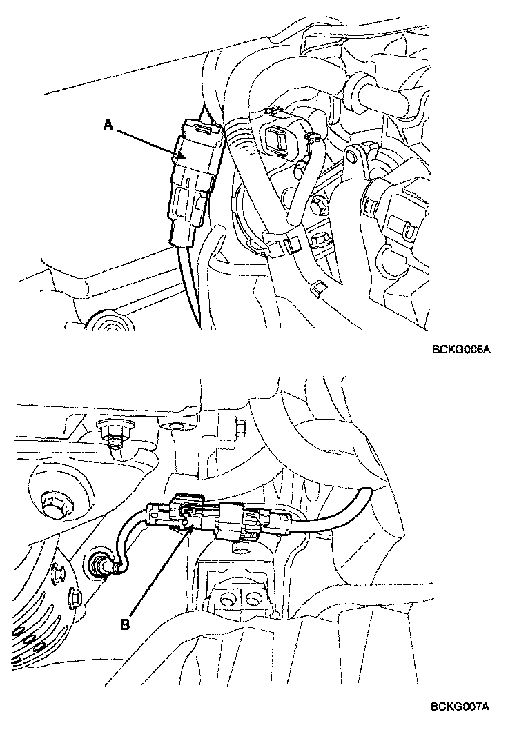 7. Disconnect the RH and LH oxygen sensor connectors(A, B).