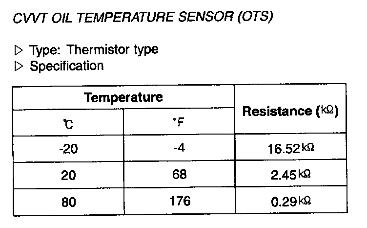 CVVT Oil Temperature Sensor (OTS) - Specification: