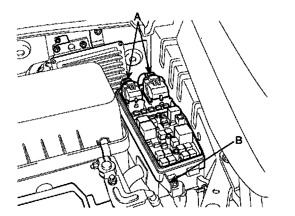 3. Remove the 2 FAM connectors (A) and battery terminal nut (B).