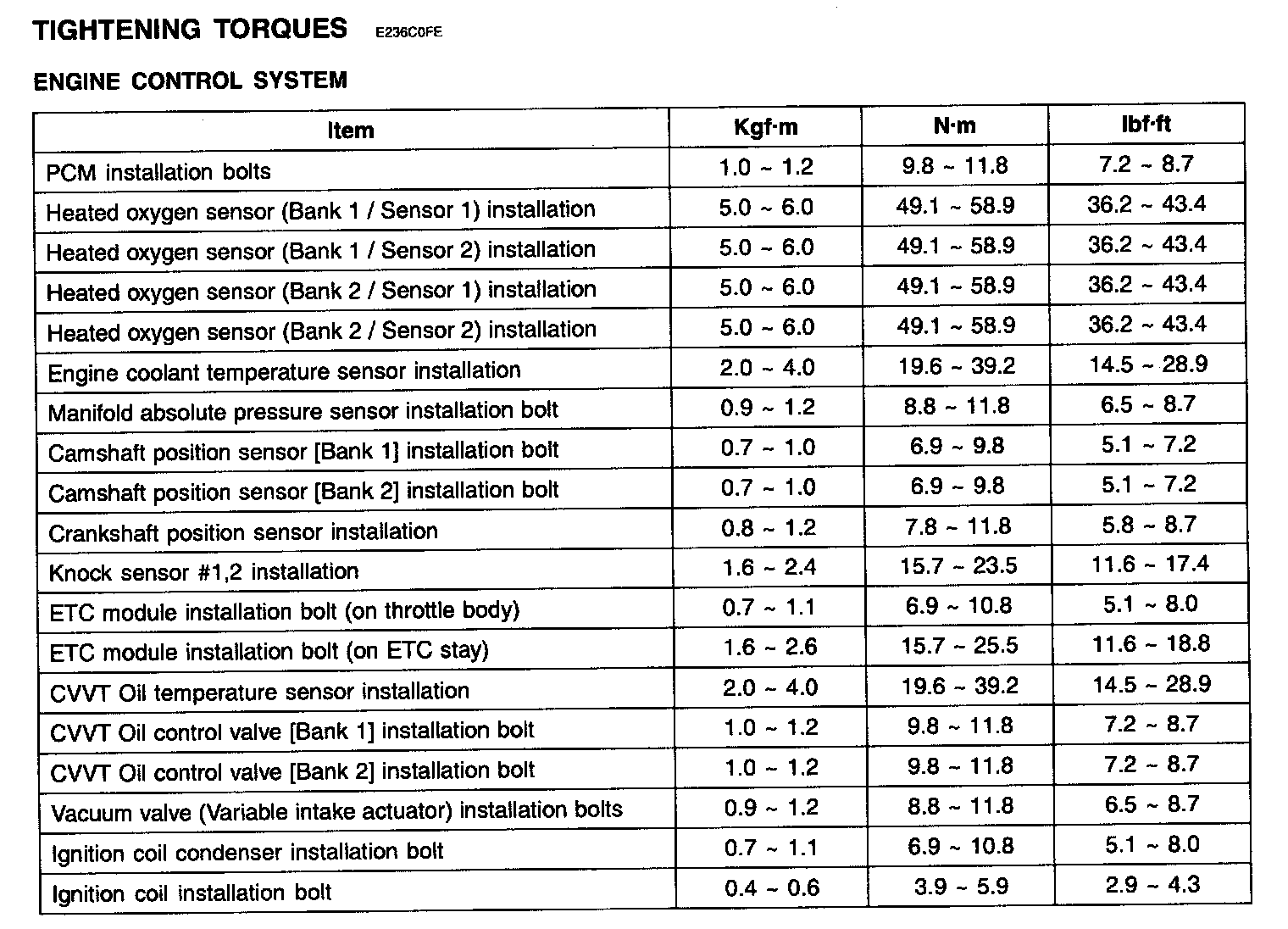 Engine Control System - Tightening Torques: