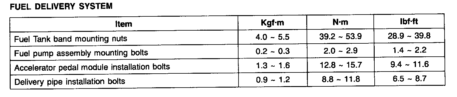 Fuel Delivery System - Tightening Torques: