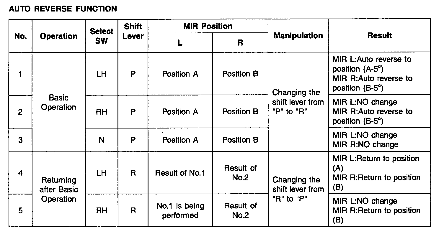 7. Out side mirror AUTO reverse operation