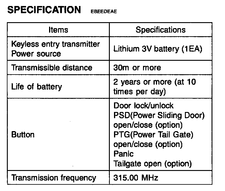 Keyless Entry And Burglar Alarm - Specification: