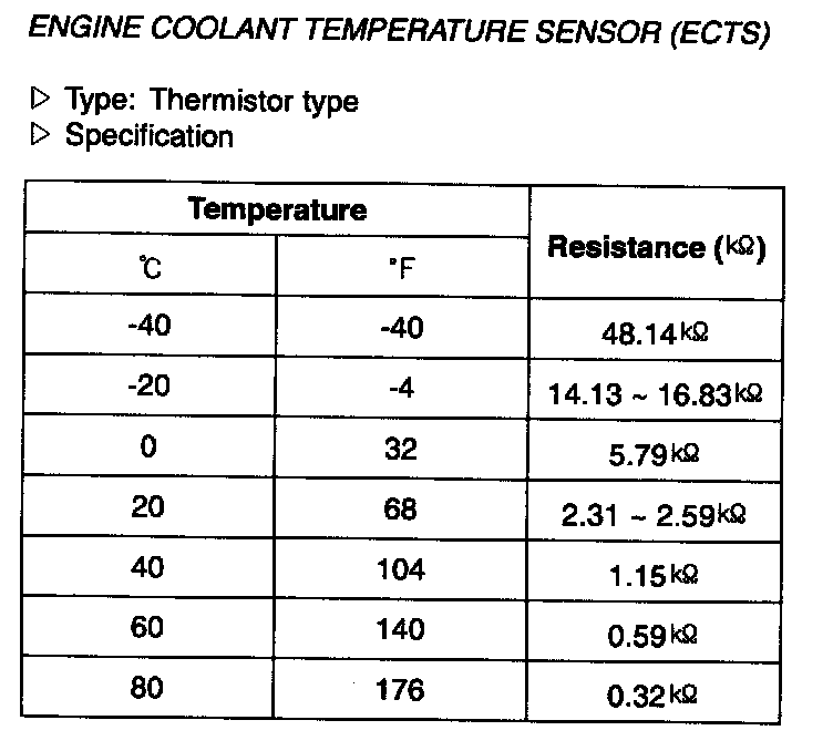Engine Coolant Temperature Sensor (ECTS) - Specification:
