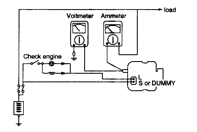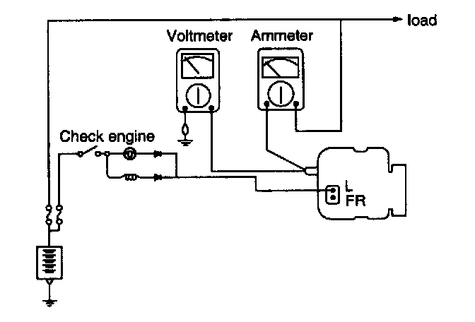 3. Run the engine at a speed of about 2,500 rpm and read the voltmeter when the generator output current drops to 10 A or less.