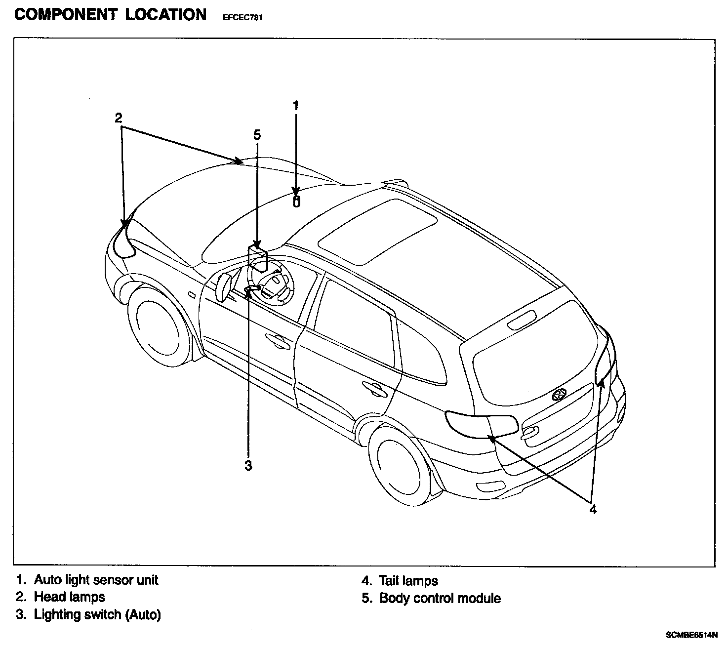 Auto Lighting Control System - Component Location: