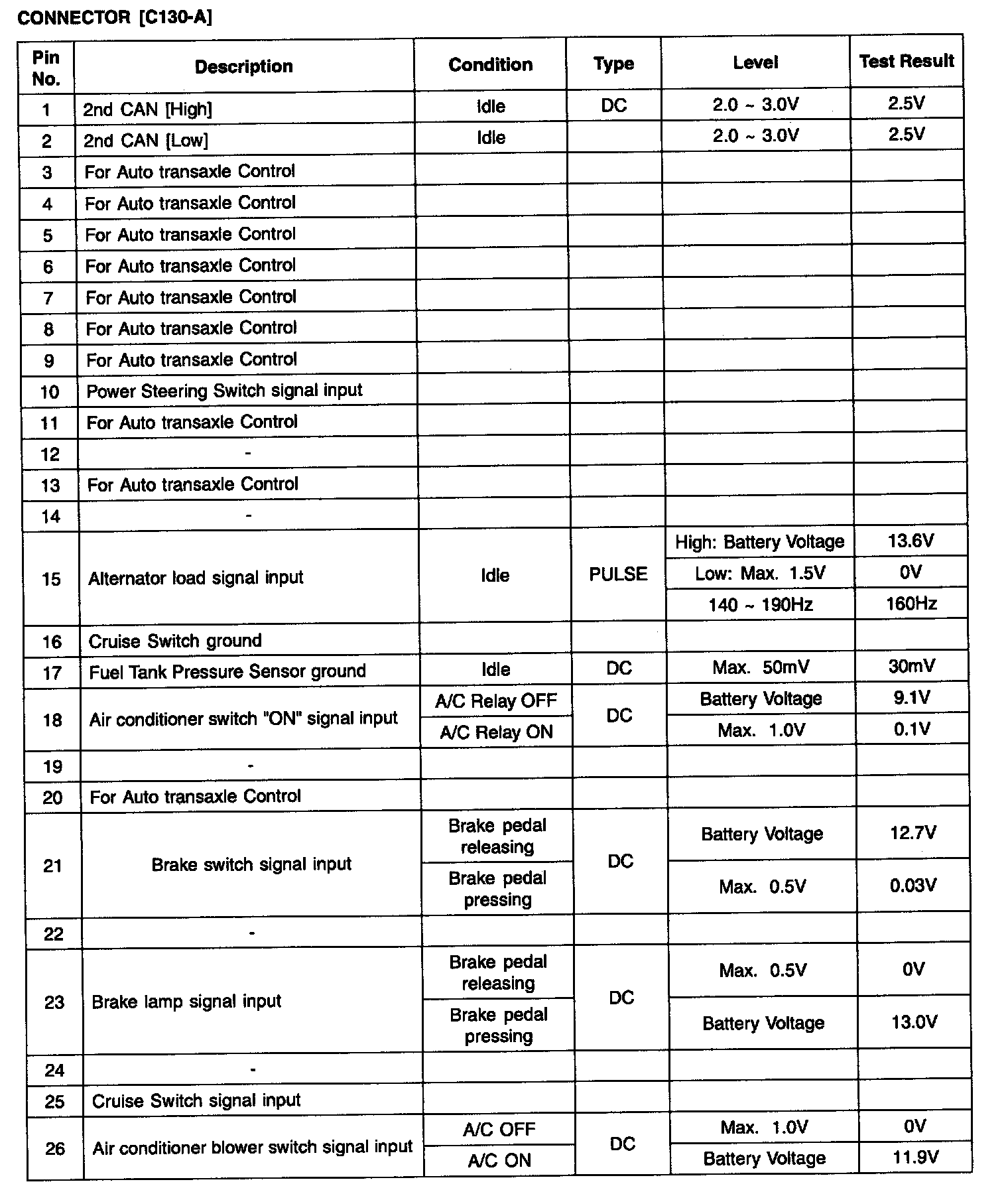 PCM Terminal Input/Output Signal - (C130-A) Part 2: