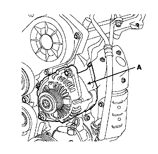 4. Pull out the through bolt and then remove the alternator (A).