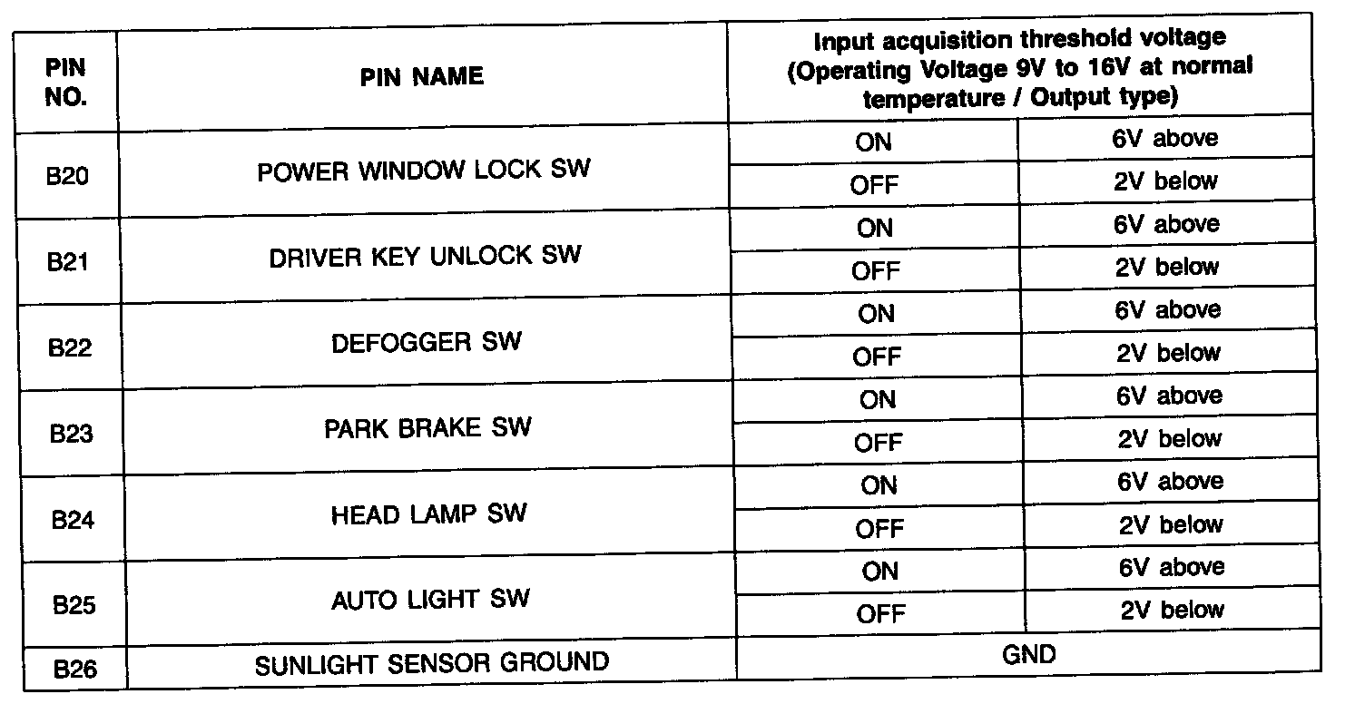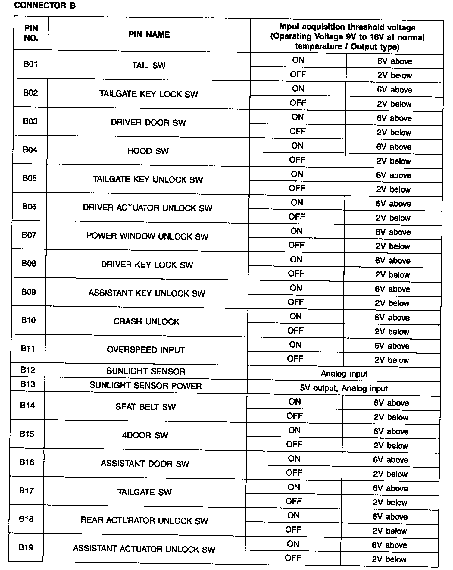 Pinout Values and Diagnostic Parameters