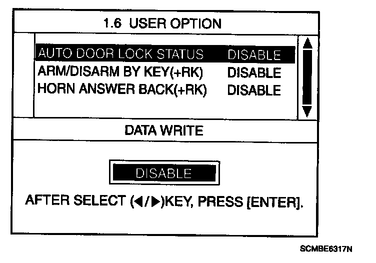 The BCM offers 3 items user Option mode for a user convenience (AUTO DOOR LOCK, ARM/DISARM BY KEY HORN ANSWER BACK)