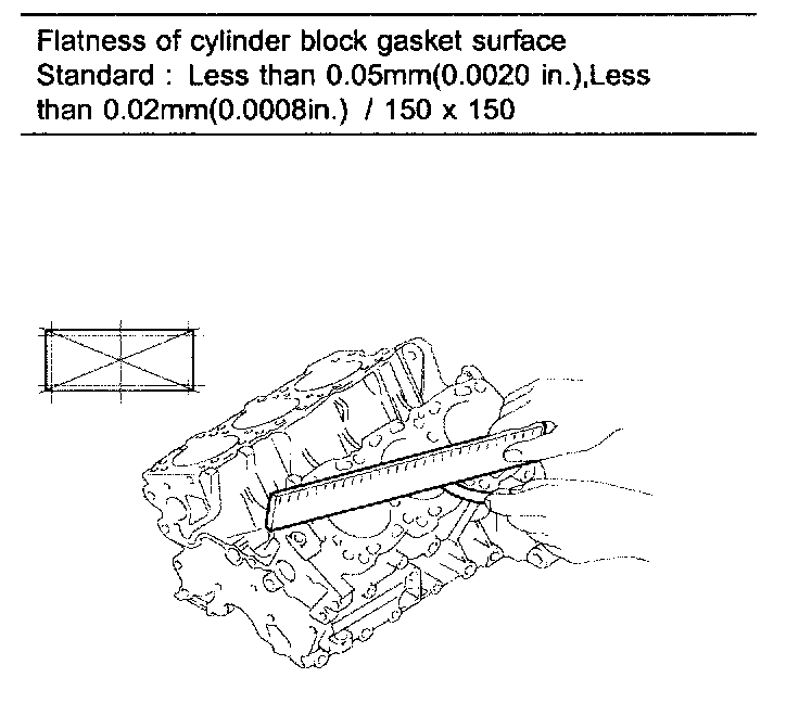 3. Inspect top surface of cylinder block for flatness.