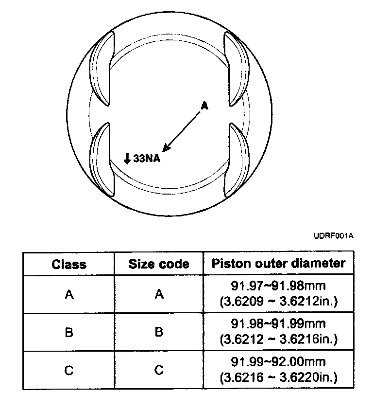 7. Check the piston size code on the piston top face.