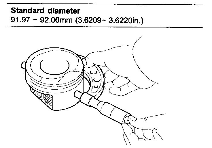 2. The standard measurement of the piston outside diameter is taken 14 mm (0.5512 in.) from the bottom of the piston.