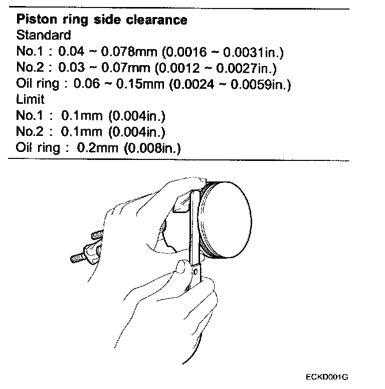 4. Inspect the piston ring side clearance.