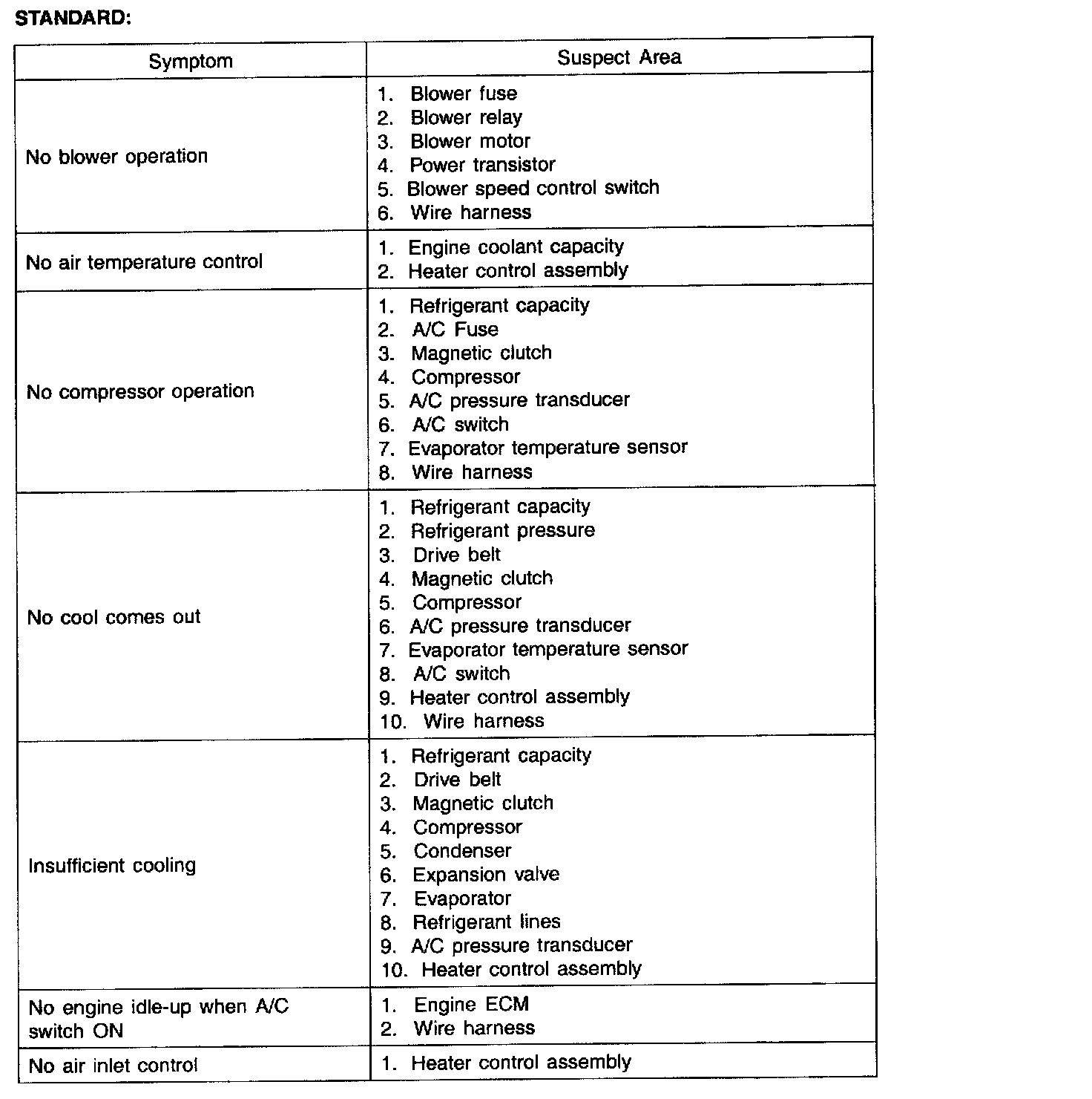 TROUBLESHOOTINGPROBLEM SYMPTOMS TABLE