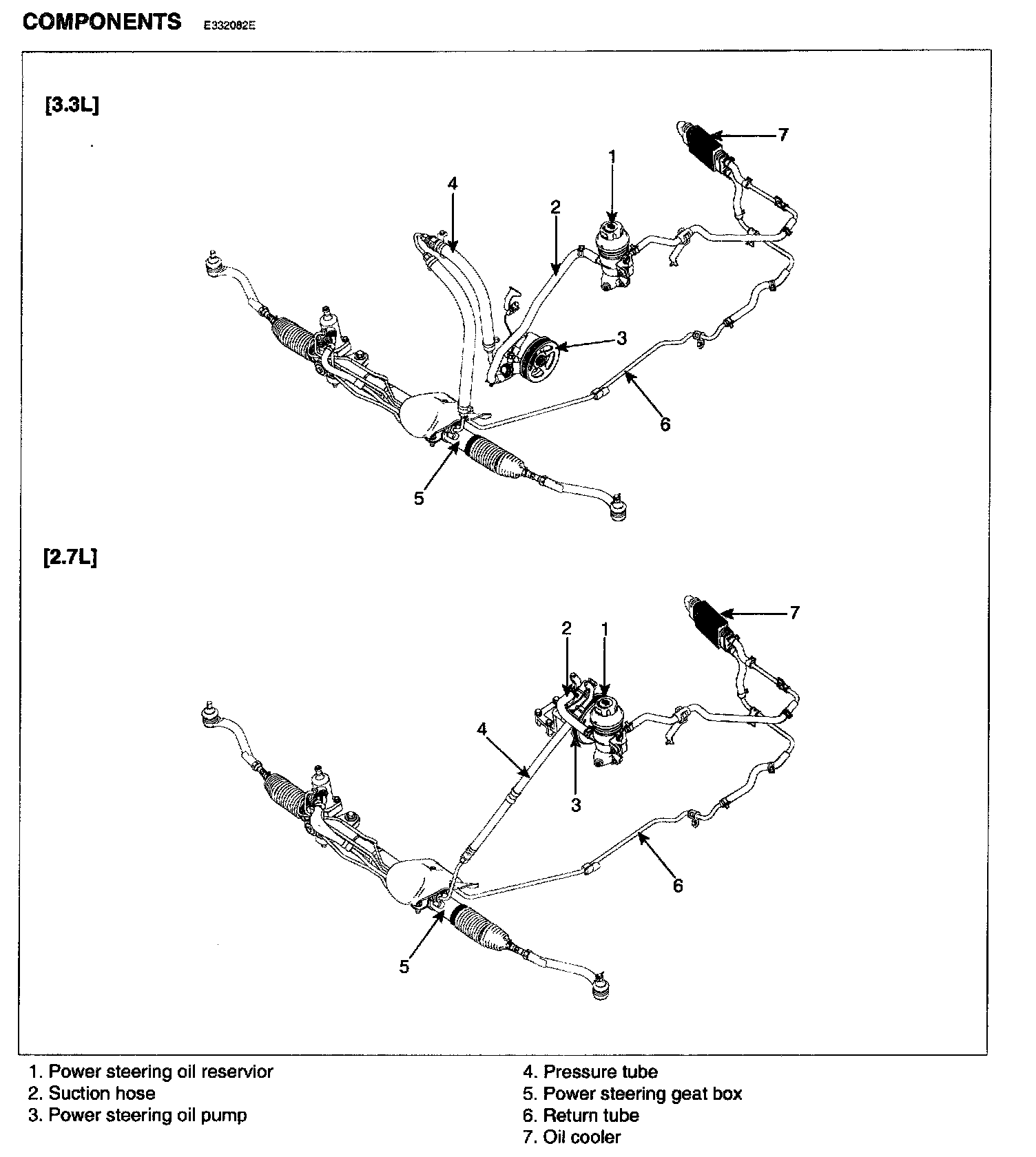POWER STEERING HOSESCOMPONENTS: