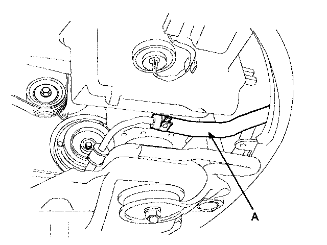 1. Drain the power steering fluid by disconnecting return hose (A).