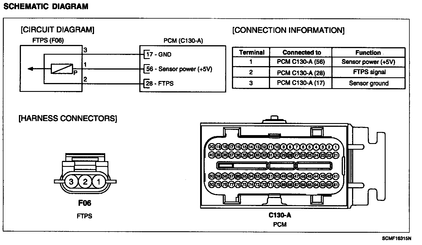 The evaporative emission control system prevents hydrocarbon vapors from escaping from the fuel tank into the atmosphere where they could form photochemical smog. Gasoline vapors are collected in the charcoal canister. The Fuel Tank Pressure Sensor (FTPS) is installed on fuel pump assembly and is an integral part of the evaporative monitoring system. The PCM monitors the FTPS signal to detect vacuum decay and excess vacuum. The FTPS measures the difference between the air pressure inside the fuel tank and atmospheric air pressure to check the purge control solenoid valve operation and for leak detection in the evaporative emission control system by monitoring pressure and vacuum levels in the fuel tank during the purge control solenoid valve operating cycles.